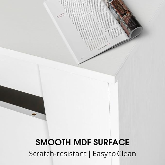 - 【Easy Clean & Versatile Style】Scratch-resistant MDF surface wipes clean instantly. Modern white finish complements farmhouse, contemporary, or minimalist decor for any indoor space.