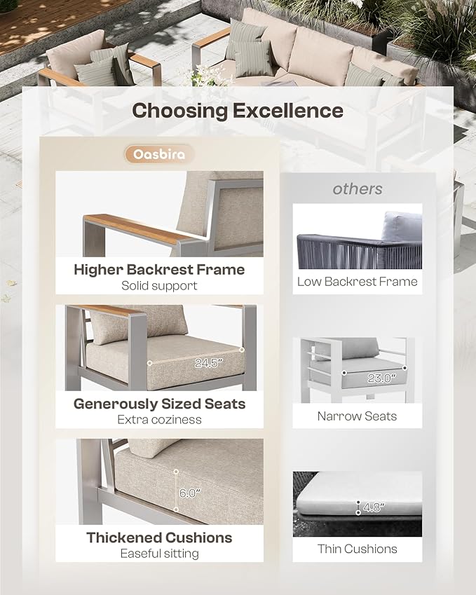 - 【Premium Materials】 The patio furniture set features a superior aluminum frame with a anodized finish for enhanced durability and stability, and water-resistant olefin cushions for easy maintenance and long-lasting outdoor use.