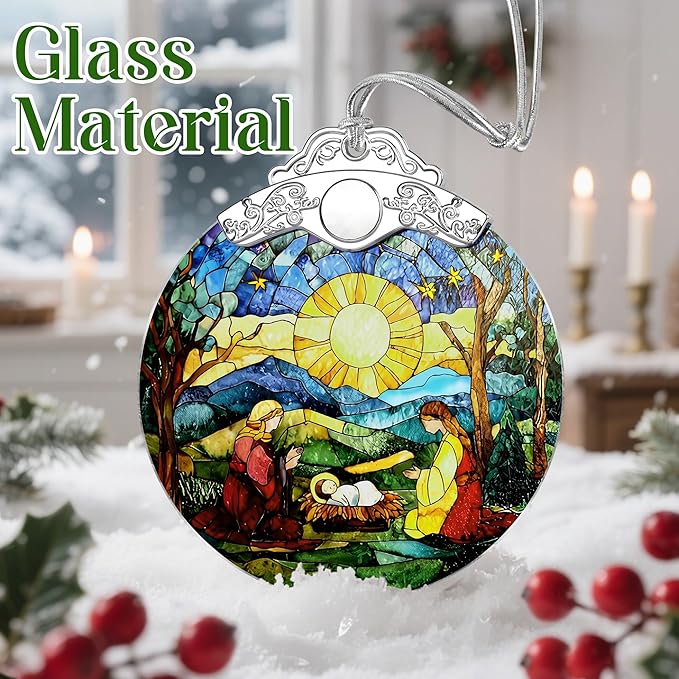- 🌟Product Description: Crafted from high-quality stained glass, this Nativity Christmas ornament features intricate details of the Holy Family with hues that stay vibrant for years (no peeling or fading). Its vivid, sacred imagery brings enduring beauty to Christmas/religious decor, adding a reverent, magical touch to mantels, shelves, or any space needing festive and spiritual charm.