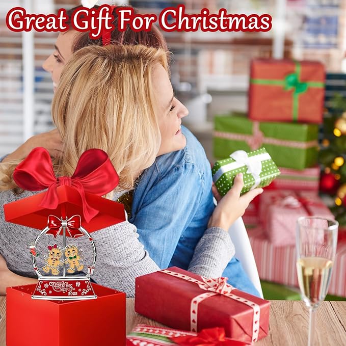 - 2025 Distinctive in Design:Features a unique crystal ball spinning gingerbread couple for tree,this 4.2" metal christmas ornament is designed to bring an extra sparkle to your holiday décor. With its crystal ball style, this ornament catches the light from every angle, creating a glowing and festive ambiance perfect for celebrating Christmas 2025