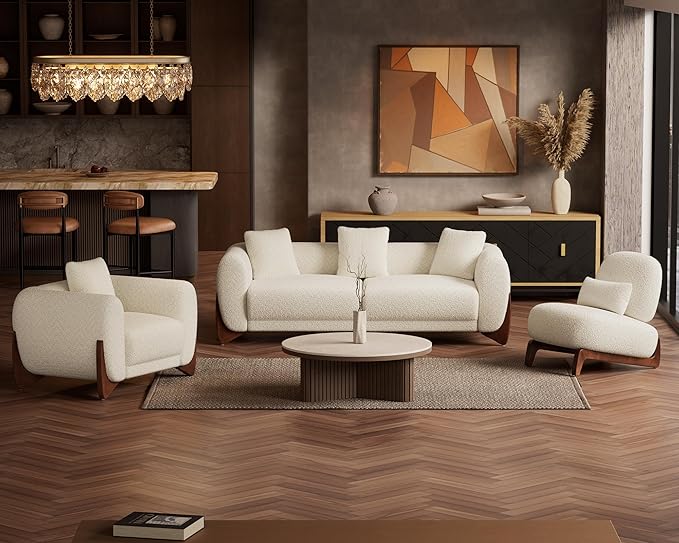 - NEW BOUCLE FABRIC: Compared to sherpa fabric, the boucle fabric is not only skin-friendly but also highly breathable, preventing heat and moisture buildup during extended use. Moreover, the fabric is resistant to wear and tear, which means this 3-piece sofa living room sets will remain a stylish and functional addition to your space for years to come. Perfect for pet family.