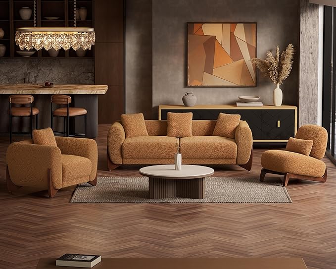 - VERSATILE USAGE: With its seemingly casual yet meticulously refined design language, whether placed as a living room sofa set, in a gaming room as a relaxing couch set, or in a home office as a guest sofa sets, this 3-piece boucle sofa set becomes the most eye-catching presence wherever it's placed in your home.