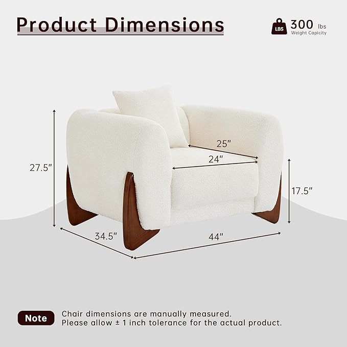 - DURABLE WITH DETAILS: Built to last, our boucle chair features a sturdy wooden frame that ensures durability and stability. The accent chair features meticulous craftsmanship in every detail. The high-recilience foam and boucle material create a double comfy experience, while the delicate stitching enhances the softness of the upholstery. Protective pads on the chair legs effectively prevent floor scratches.