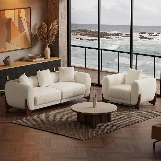 - STYLISH MODERN DESIGN: The Morden Fort boucle sofa chair boasts a modern minimalist French fashion style. The product incorporates the beauty of curves into every detail, with its distinctive sofa legs and armrest design showcasing this aesthetic. Additionally, the included matching lumbar pillow provides proper support, enhancing the overall comfort.