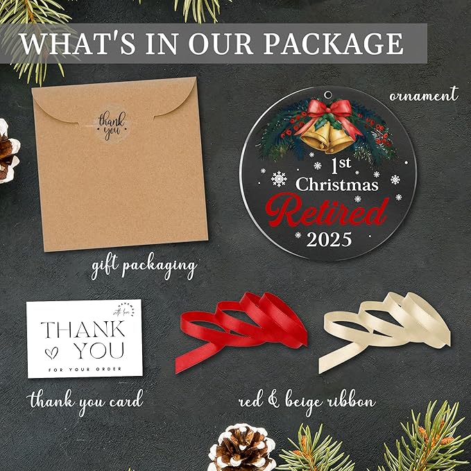 First Christmas Retired Ornament 2025, Retirement Gift for Woman, Men, Happy Retirement Gifts for Nurses, Teacher, Police, Doctor, Coach, Boss, Coworker, Mom, Dad, Friend, Best Retiring Present