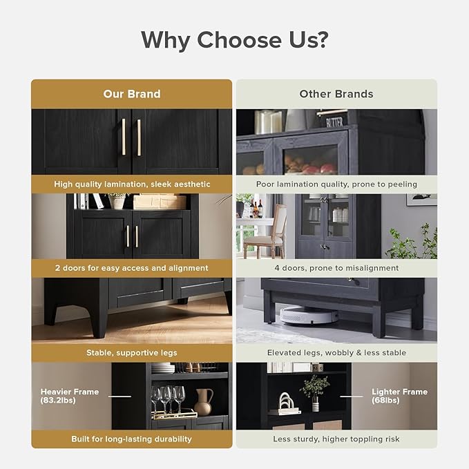 - Unique design: Boasting a unique arched design, farmhouse paneled frame design, soft-closing doors and classy contrasting handles, it is meticulously crafted with particle board and enveloped in a high-quality laminate. This ensures durability and showcases an enchanting wood grain design pattern, imparting a soft and inviting look to your space