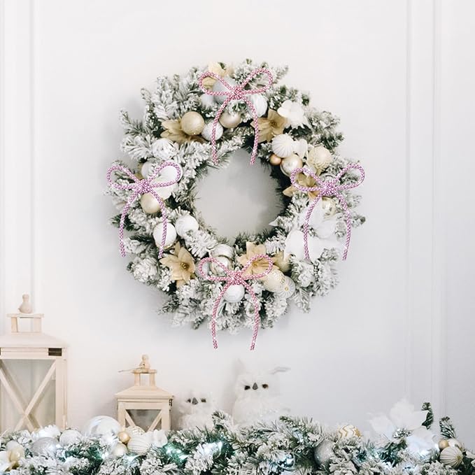 FLAIR GIFTS 6 Pcs 4.3" x 6" 2025 Christmas Bows for Tree Decor, Mix Pink Sparkly Glitter Rhinestone Bow Ornaments with Twist Tie for Xmas Decoration, Wreath, Garland, Gift Wrapping