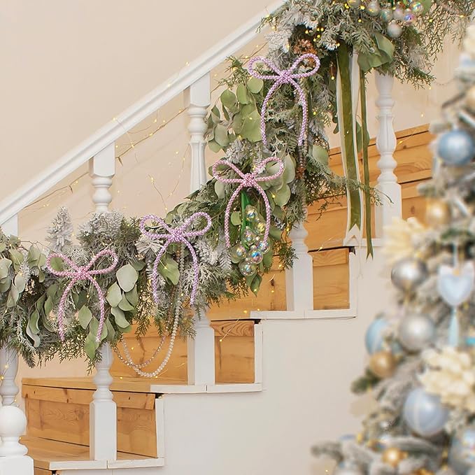 - Super Easy to Install & Secure Hold: Each bow features a flexible and transparent plastic-coated metal twist. Simply wrap it around any branch, wreath, garland, candle holders, glass, or Wine Bottles and twist to secure. The metal twist is sturdy, thick, and easy to bend, ensuring your decorations stay perfectly in place without slipping or damaging surfaces.