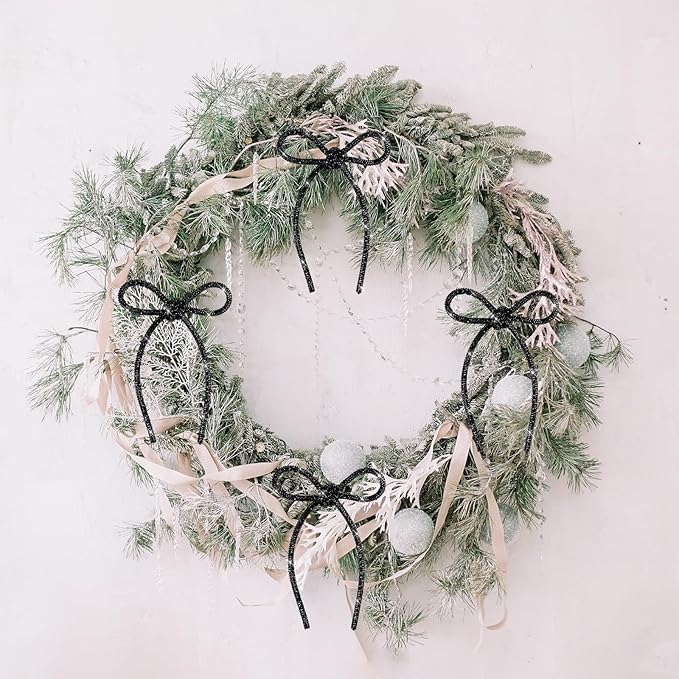 - Super Easy to Install & Secure Hold: Each bow features a flexible and transparent plastic-coated metal twist. Simply wrap it around any branch, wreath, garland, candle holders, glass, or Wine Bottles and twist to secure. The metal twist is sturdy, thick, and easy to bend, ensuring your decorations stay perfectly in place without slipping or damaging surfaces.