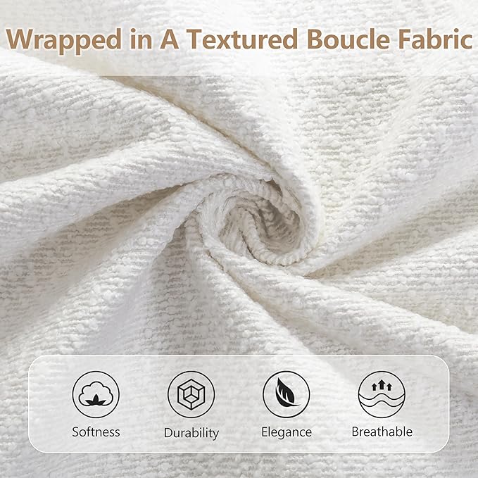 - Plush Boucle Fabric for Supreme Softness:Wrapped in ultra-soft, cloud-like boucle upholstery, this king-size bed frame adds a touch of cozy elegance to your bedroom. The textured terry fabric is gentle against the skin, creating a warm and inviting sleep sanctuary