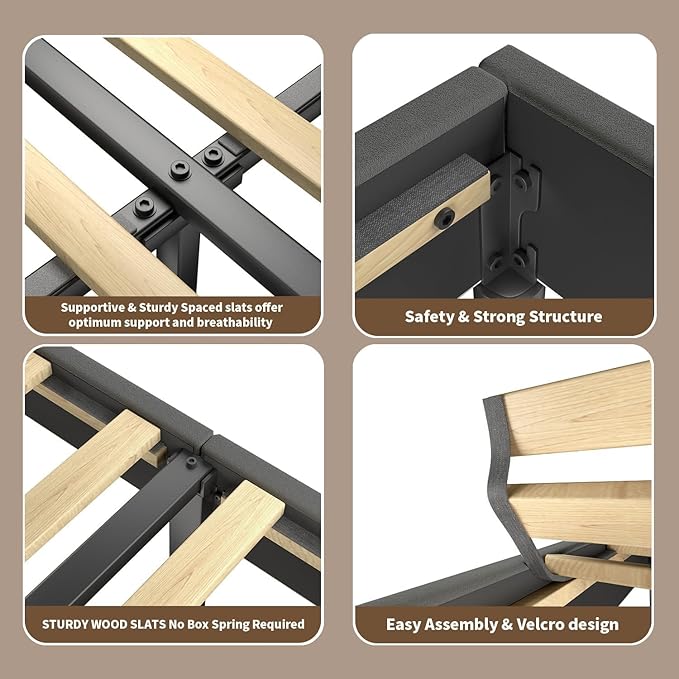 - 【Easy Assembly Bedframe Queen-Size】Clear instructions, labeled parts, and all necessary tools come with this cute queen platform bed frame with headboard, so one adult can assemble the modern design in about 45 minutes. From its soft fabric to its sturdy build, every detail is designed for ease. If you have questions, our support team responds within 24 hours—because even the coziest cloud bed frame should be hassle-free to set up.