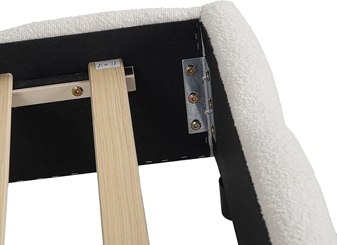 - Modern Minimalist Aesthetic:With its clean vertical lines and sleek rubber wood legs, this upholstered bed frame blends seamlessly into contemporary, Scandinavian, or boho-chic bedrooms. The neutral white finish and fluffy boucle texture elevate any decor