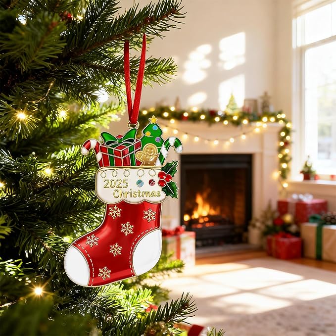 - Unique Design: This 2025 Christmas stocking ornament features a gift box, gingerbread man, Christmas tree, candy, and snowflake patterns inside. This beautiful stocking ornament makes a wonderful keepsake for newlyweds, a lovely addition to a Christmas wreath, and an ideal Christmas gift