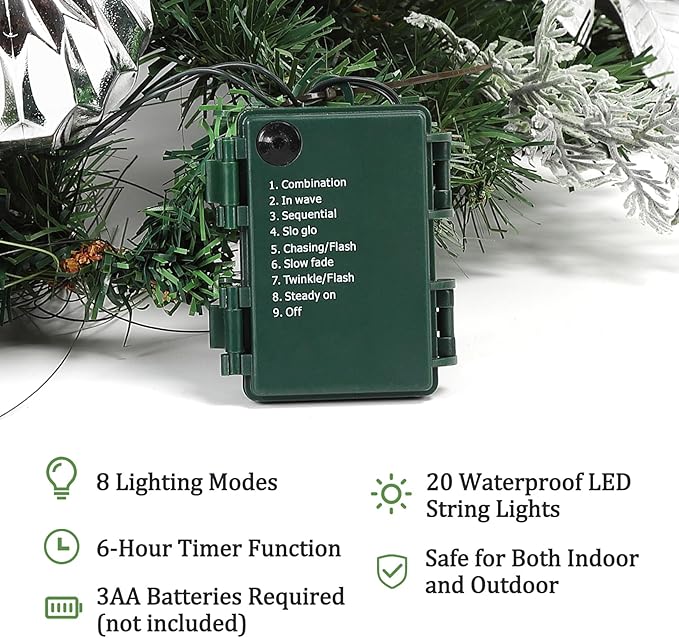 6FT Pre-Lit Christmas Garland with 20 LED Lights, Artificial Silver Garland with Pinecones, Berries, Silver Ornaments, Glitter Ribbons & Leaves, Battery Operated, for Mantle, Fireplace, Staircase,