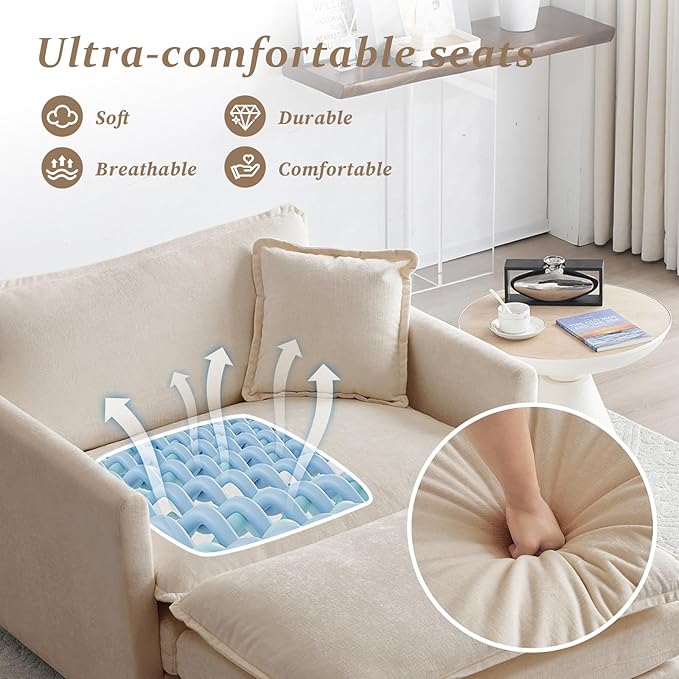 - Ultimate Comfort Experience: Crafted with high-density foam and a 25-inch deep seat, this sofa offers unmatched comfort. The dual-layer cushions relieve pressure, while the thick, removable armrests enhance flexibility. Ideal for long sitting sessions, relaxation, or entertaining, it provides lasting comfort and support.